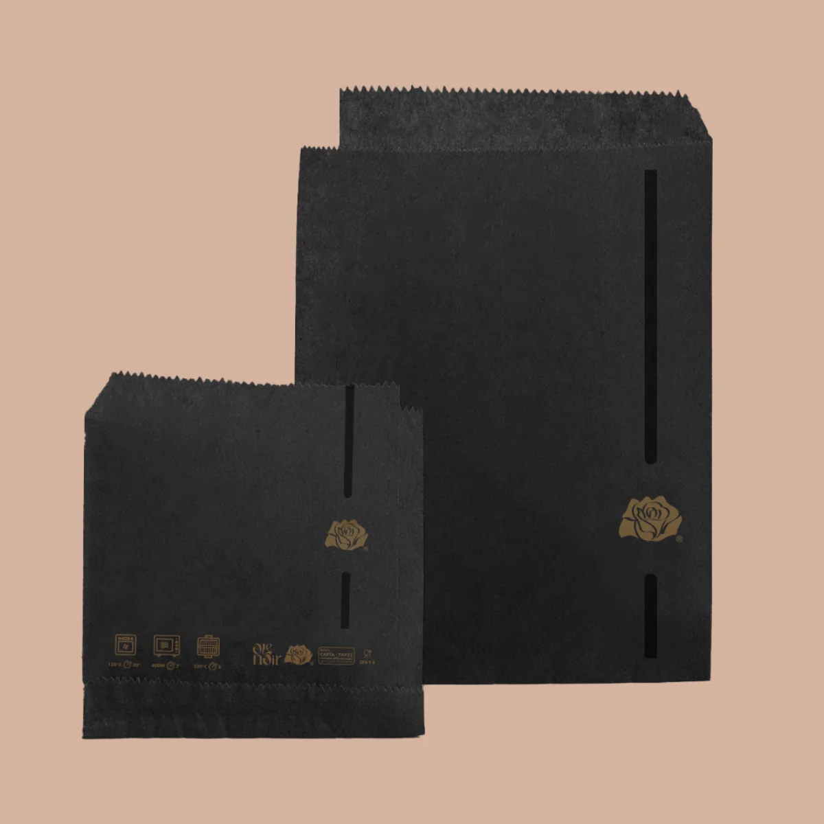 Papirnate vrečke OLENOIR polžep (Paniké) v črni barvi so napredna rešitev za serviranje sendvičev, burgerjev in street fooda. Posebna oblika omogoča enostavno vstavljanje hrane ter zagotavlja čisto, praktično in profesionalno uporabo.