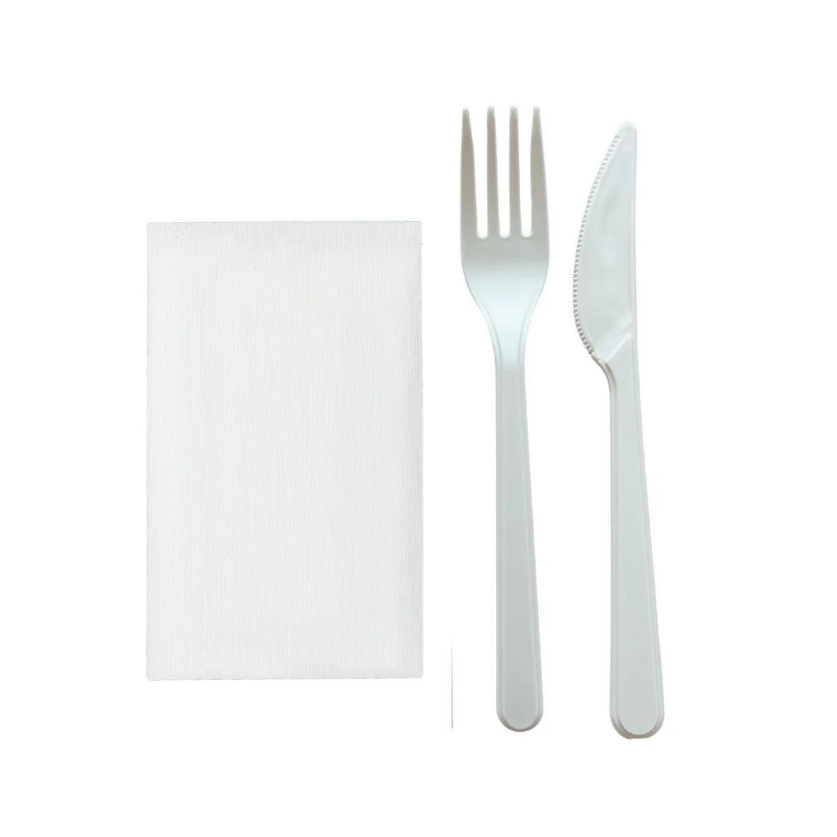 Praktičen CPLA set, ki vsebuje vilico, nož in servieto, je popolna izbira za priročno in okolju prijazno rešitev pri postrežbi hrane. Izdelki so narejeni iz trajnostnega materiala CPLA (kristalizirane polimlečne kisline ter koruznega in krompirjevega škroba), ki je biološko razgradljiv in kompostabilen. Možnost večkratne uporabe.
