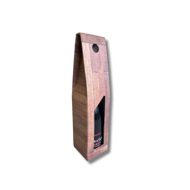 Darilna kartonska škatla za vino z oknom, imitacija lesa, 1 steklenica