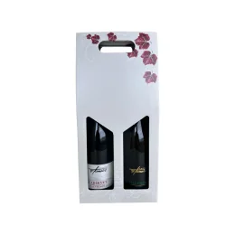 Darilna kartonska škatla za vino z oknom, bela, 2 steklenici - Almima Embal d.o.o.